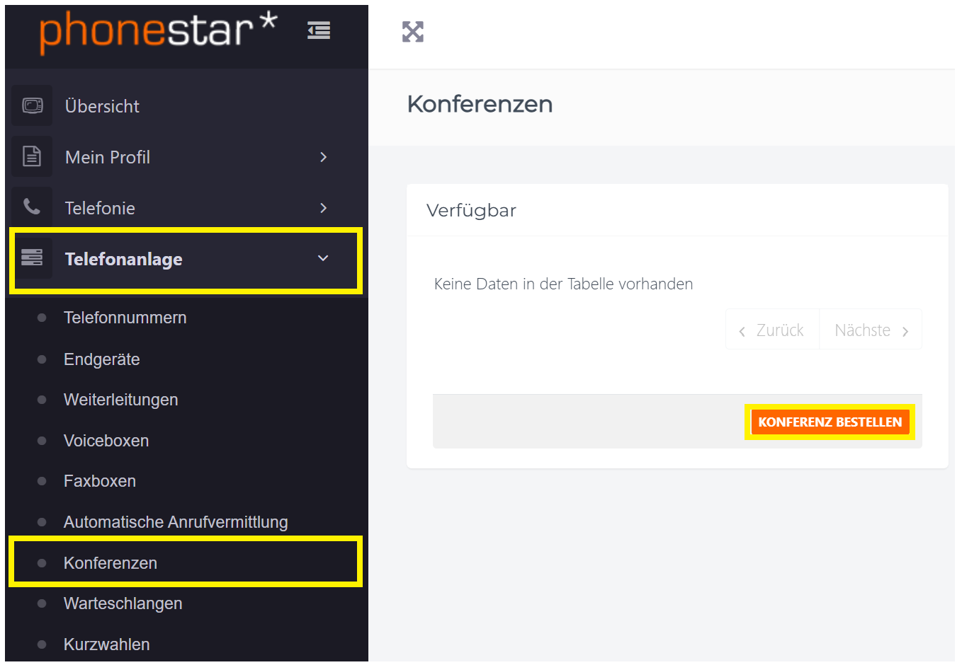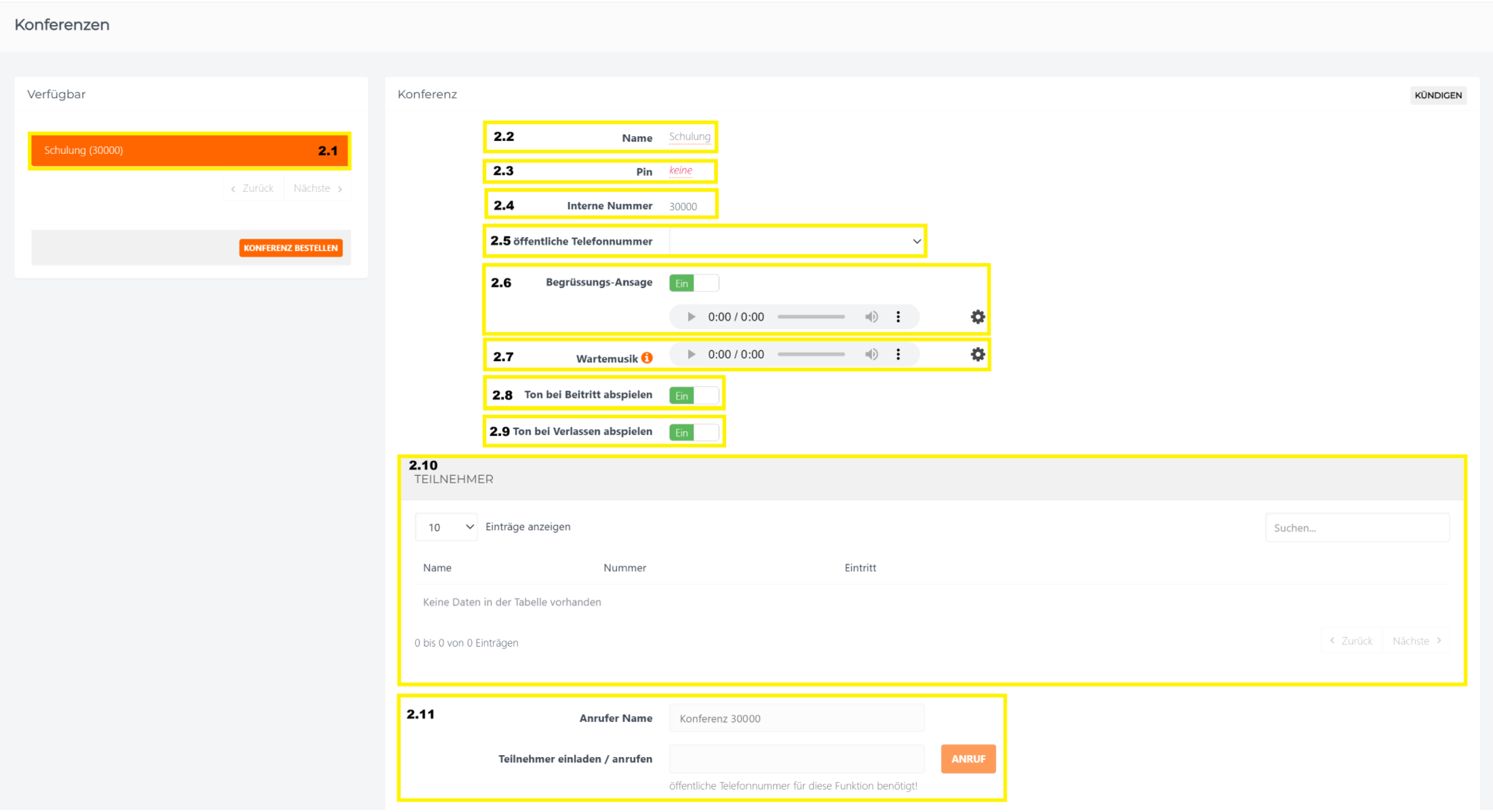 1. Konferenz bestellen