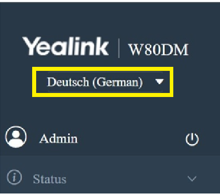 4. Wählen Sie oben links die Sprache des Webinterface aus.
