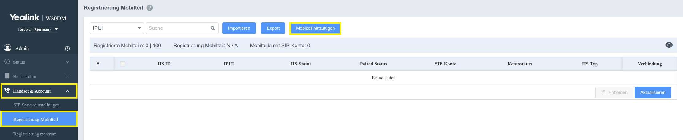 Installationsanleitung Yealink W80DM mit W80B und mit Mobilteilen