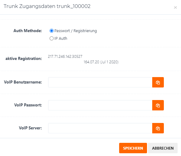 Authentifizierungspasswort = VoIP Passwort