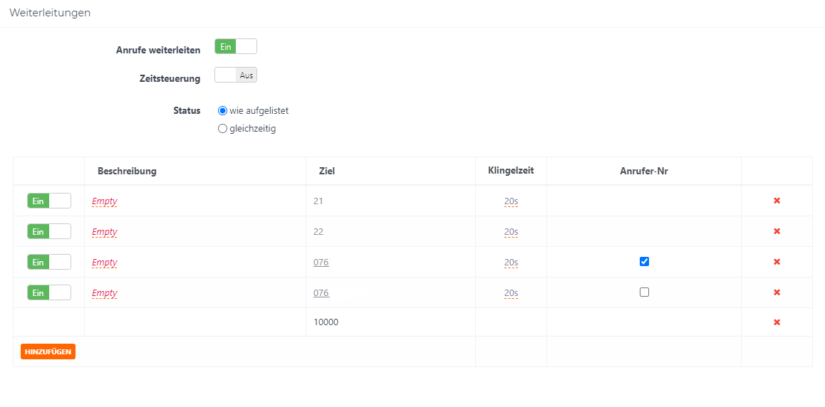 1. Wenn nur 1 Nebenstelle (Endgerät) unter der Telefonnummer verwendet wird, funktioniert die Weiterleitung auf dem Telefon ohne weitere Anpassungen.